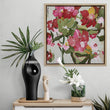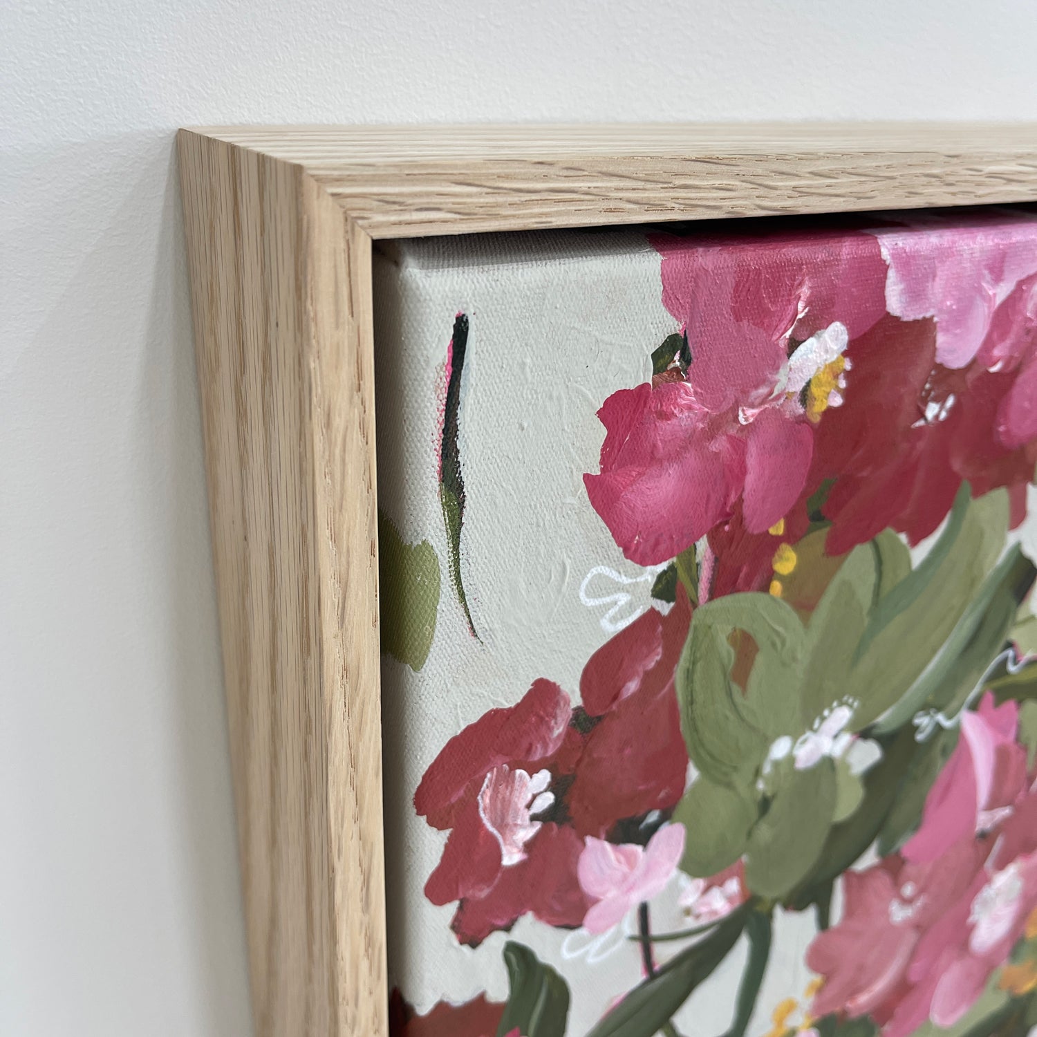 Bring nature into your home with this stunning abstract floral original painting. Inspired by the tranquil moments wandering around in a lovely colourful flower garden and admiring all the blossoming flowers. Elevate your room with a modern botanical style painting in calming natural greens and warm pinks and reds that will never go out of style.