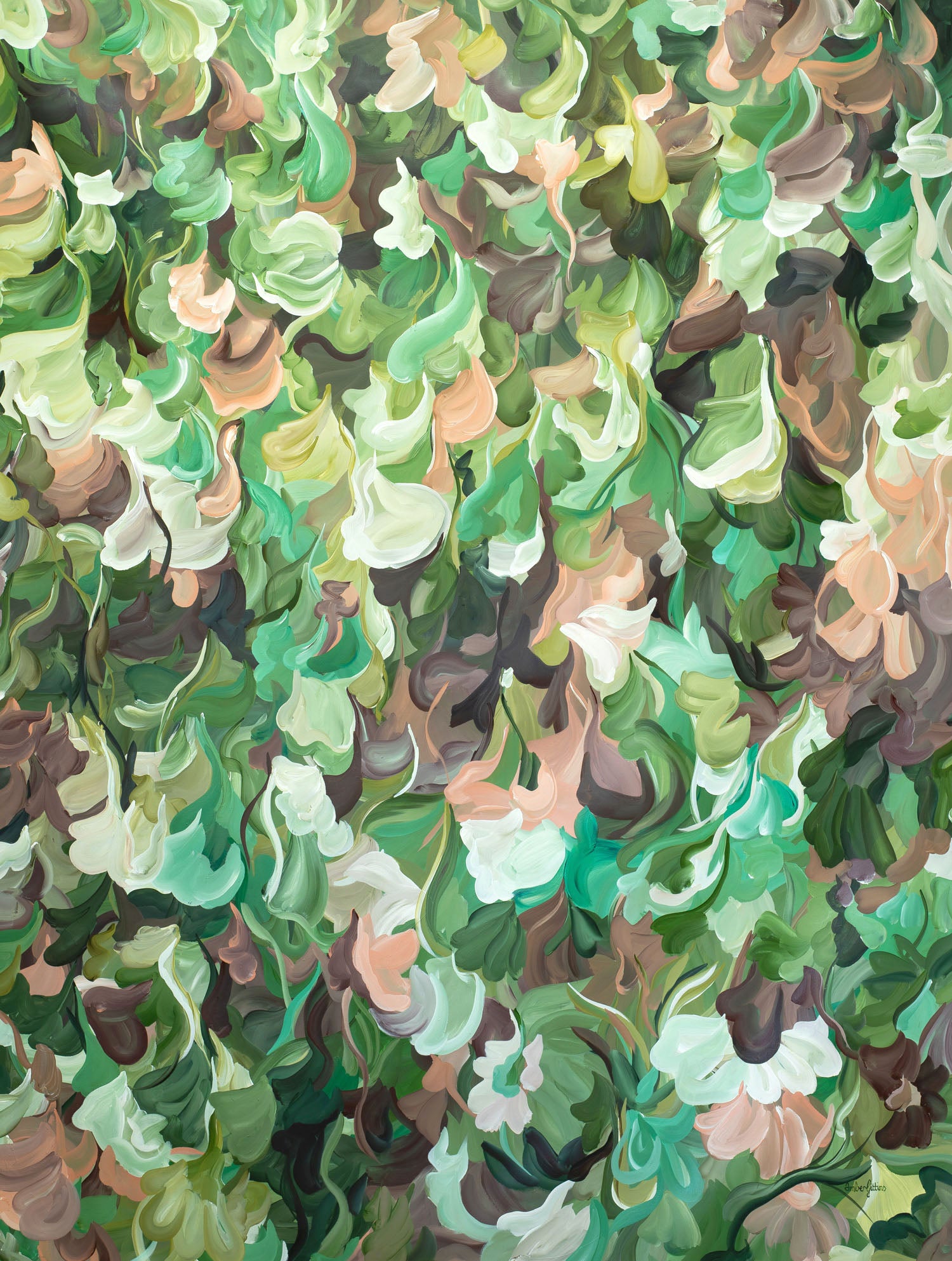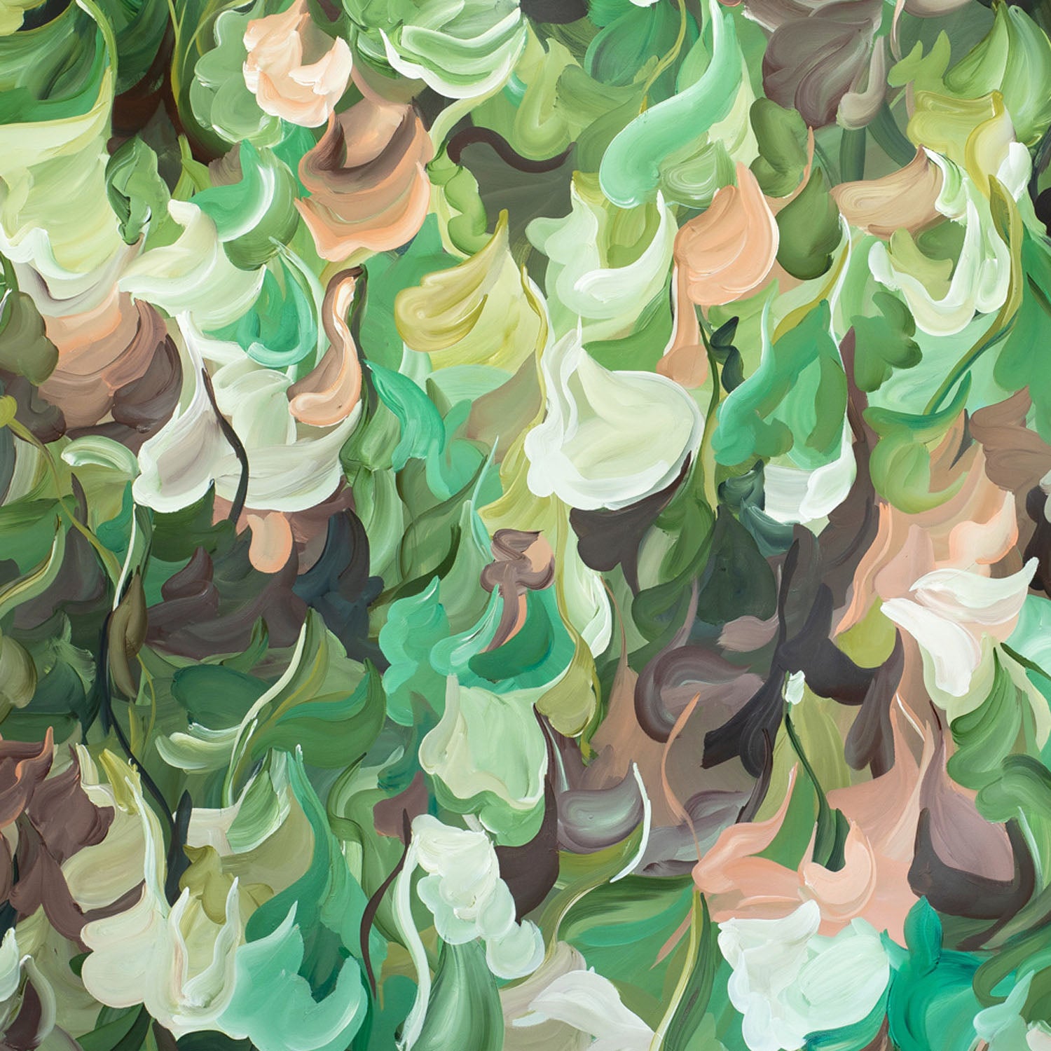 Unique abstract flowing brushstrokes to create movement and tranquility. Bringing the calming and joyful elements of nature and wellness into your room.