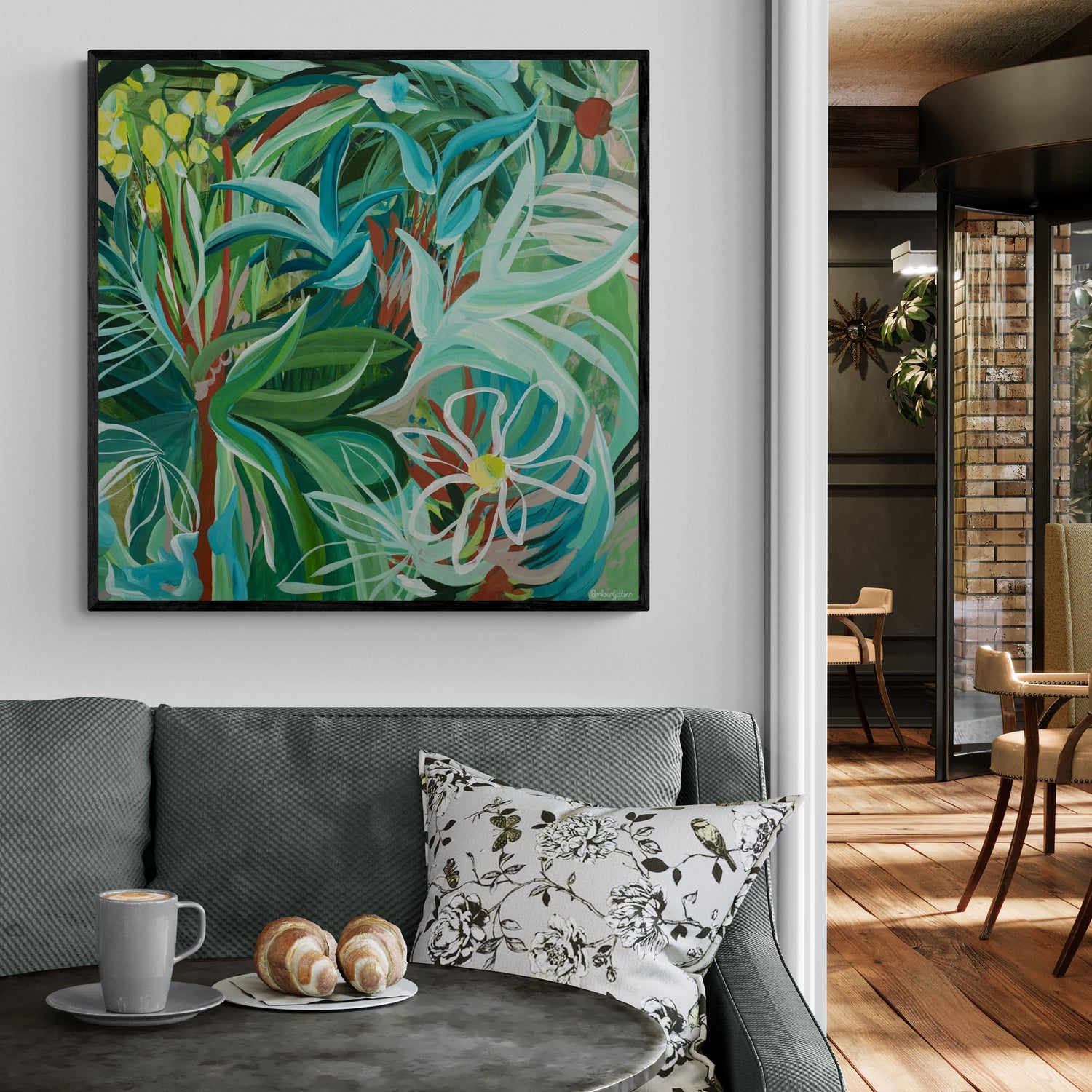 Abstract tropical rainforest inspired original painting from my January 2024 'Going Troppo' collection.