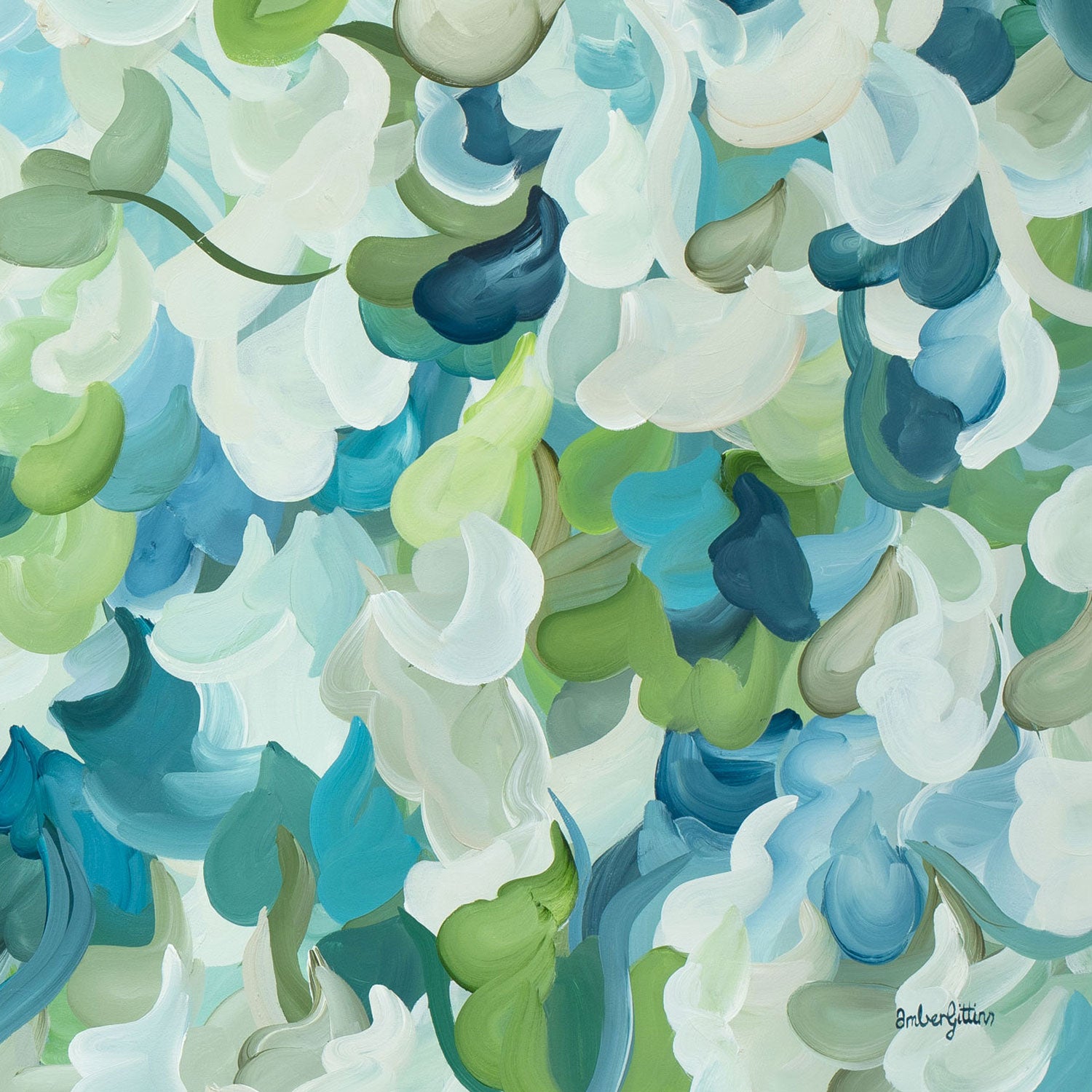 Beautiful paintings! How lucky am I, this is my second commission from Amber and I am just as thrilled as the first. Greens, whites and a touch of blue are perfect in my kitchen/family room! Thank you Amber once again, it was such an easy process and my artwork was delivered safely to my home.