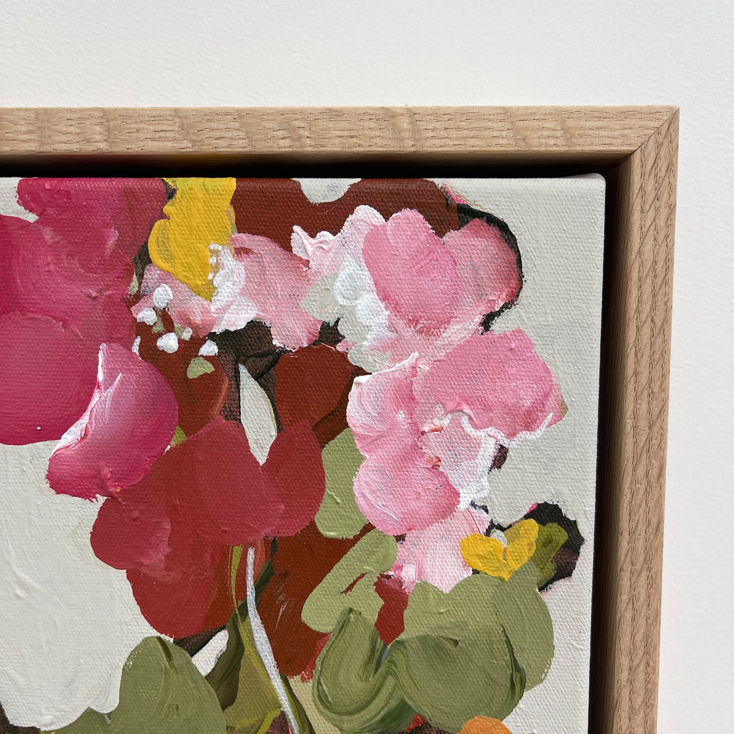 Bring nature into your home with this stunning abstract floral original painting. Inspired by the tranquil moments wandering around in a lovely colourful flower garden and admiring all the blossoming flowers. Elevate your room with a modern botanical style painting in calming natural greens and warm pinks and reds that will never go out of style.