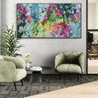 Beautiful painting with vibrant colors and perfect balance! I really love Amber's work! The paintings are so bright and full of movement and can be placed anywhere. I have it in my living room and it complements the other colors around. I would love to have a bigger piece once I have a bigger house!