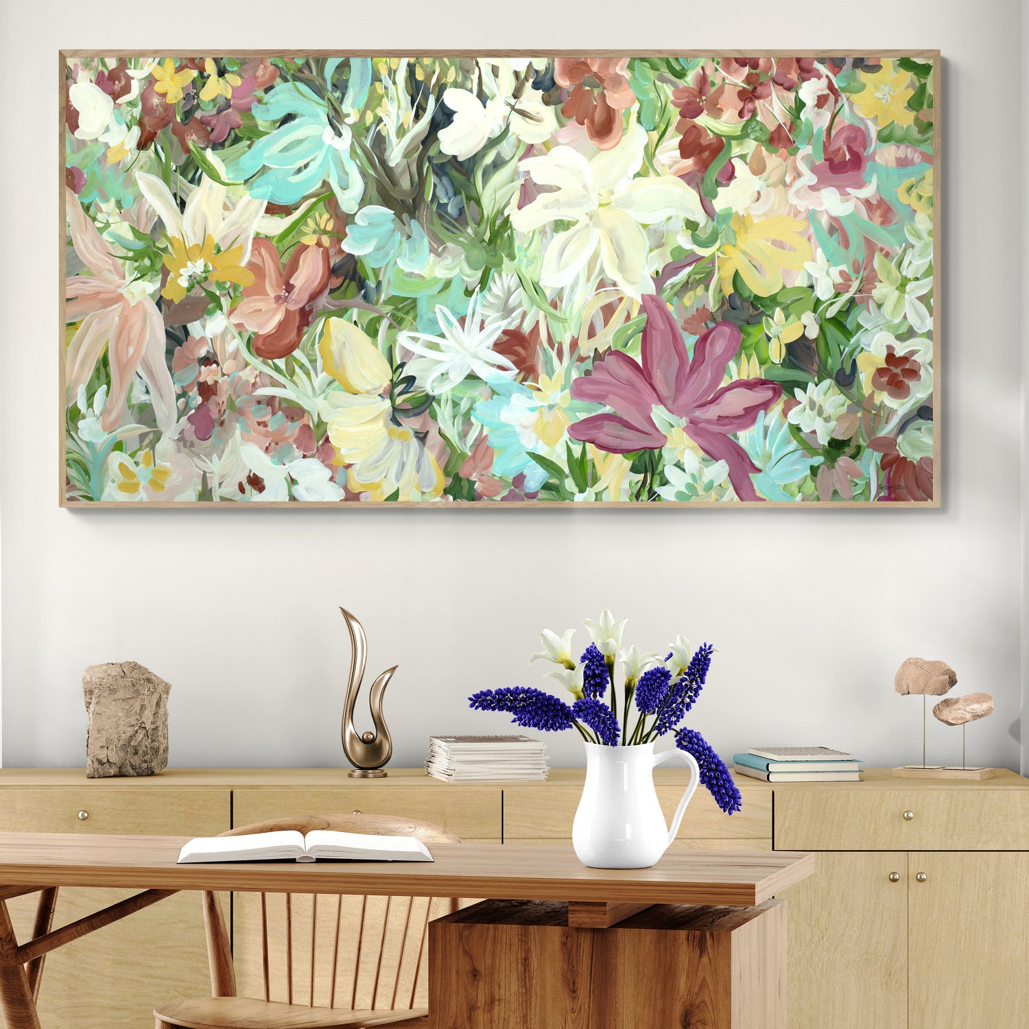 Extra large floral abstract art for your home interior. Renovating? Redesigning? Building a new home? Don't forget to add art to make a statement to your rooms design. Bring warmth and nature into your home with this stunning abstract flower original painting. Inspired by the tranquility and romance of wildflowers in bloom. This contemporary botanical style will bring calming colour and joy into your room. The modern colour palette of lovely pastel shades of aquas, greens, browns and pinks is a beautiful colour combination that will never go out of style.