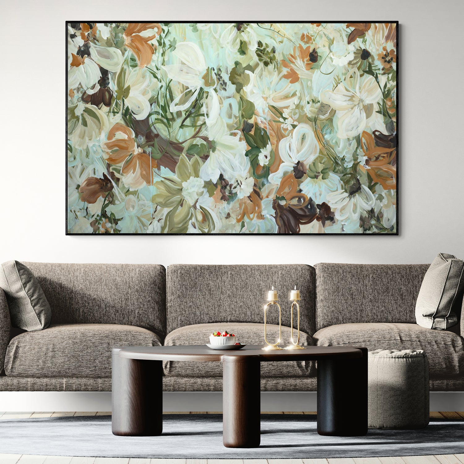 This original floral painting brings a sense of calm and openness to a space. The neutral botanical tones make it perfect for modern, coastal or minimalist interiors, while still offering enough warmth and texture to feel inviting and alive. It’s the kind of piece that gently transforms a room, adding a peaceful, nature-inspired atmosphere without overwhelming it.